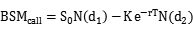 对于欧式看涨期权,BSM模型给出的理论定价形如: