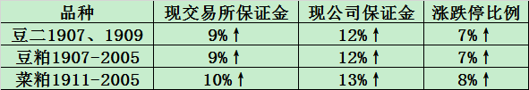 因今日多个品种出现单边市,现各品种保证金以及涨跌停板调整如下: