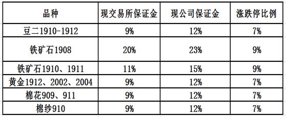 关于2019年8月5日相关品种停板合约保证金率和涨跌幅调整的通知