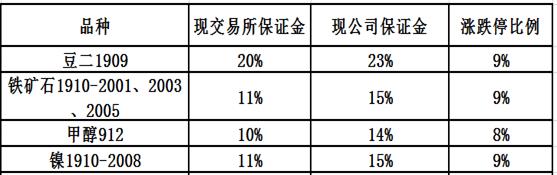 关于2019年9月2日相关品种停板合约保证金率和涨跌幅调整的通知