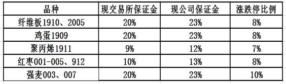 关于2019年9月3日相关品种停板合约保证金率和涨跌幅调整的通知