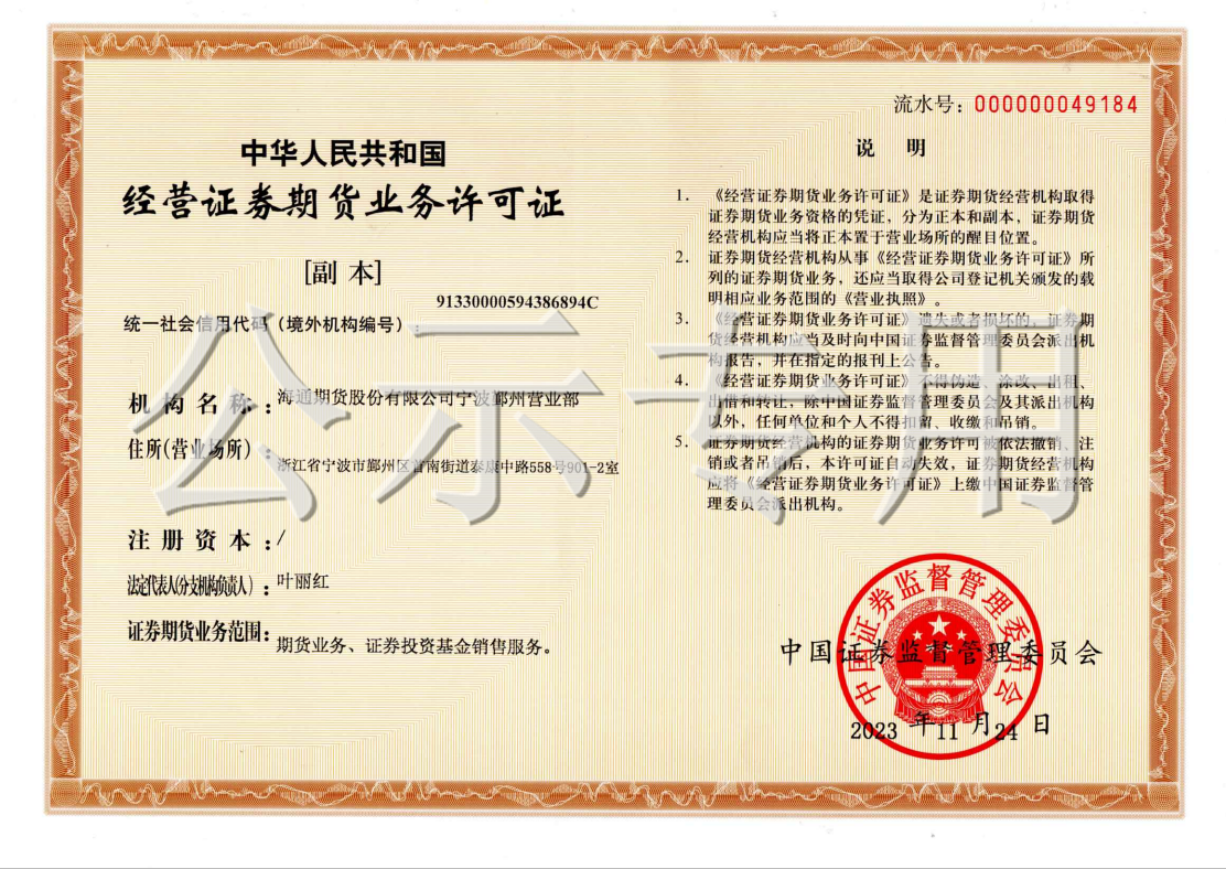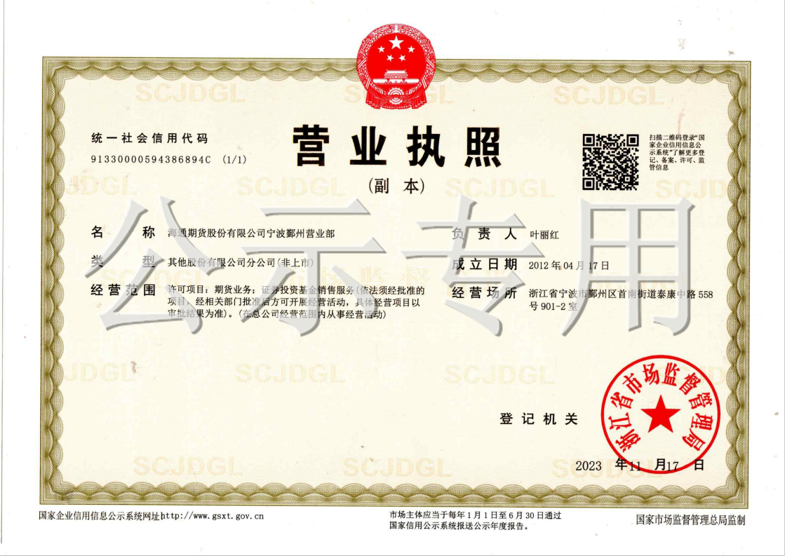 海通期货有限公司宁波鄞州营业部于2012年5月正式开业,营业部位于宁波市商业金融中心南部商务区宁波商会国贸中心30层,毗邻风景优美的鄞州公园,地理位置优越,交通便捷。营业面积达800多平方米,场地装修宽敞明亮,布局合理,环境舒适。 营业部配置一流,拥有先进、齐全的电子化交易平台,配置了多套网上交易系统, 交易方式灵活、安全、快捷、稳定,并为高端客户配备有多个舒适、宽敞的VIP室。 营业部拥有一支职业道德高尚、业务经验丰富的团队,可根据投资者的需求,提供证监会允许的各项服务,为投资者开展投机交易、套期保值、...