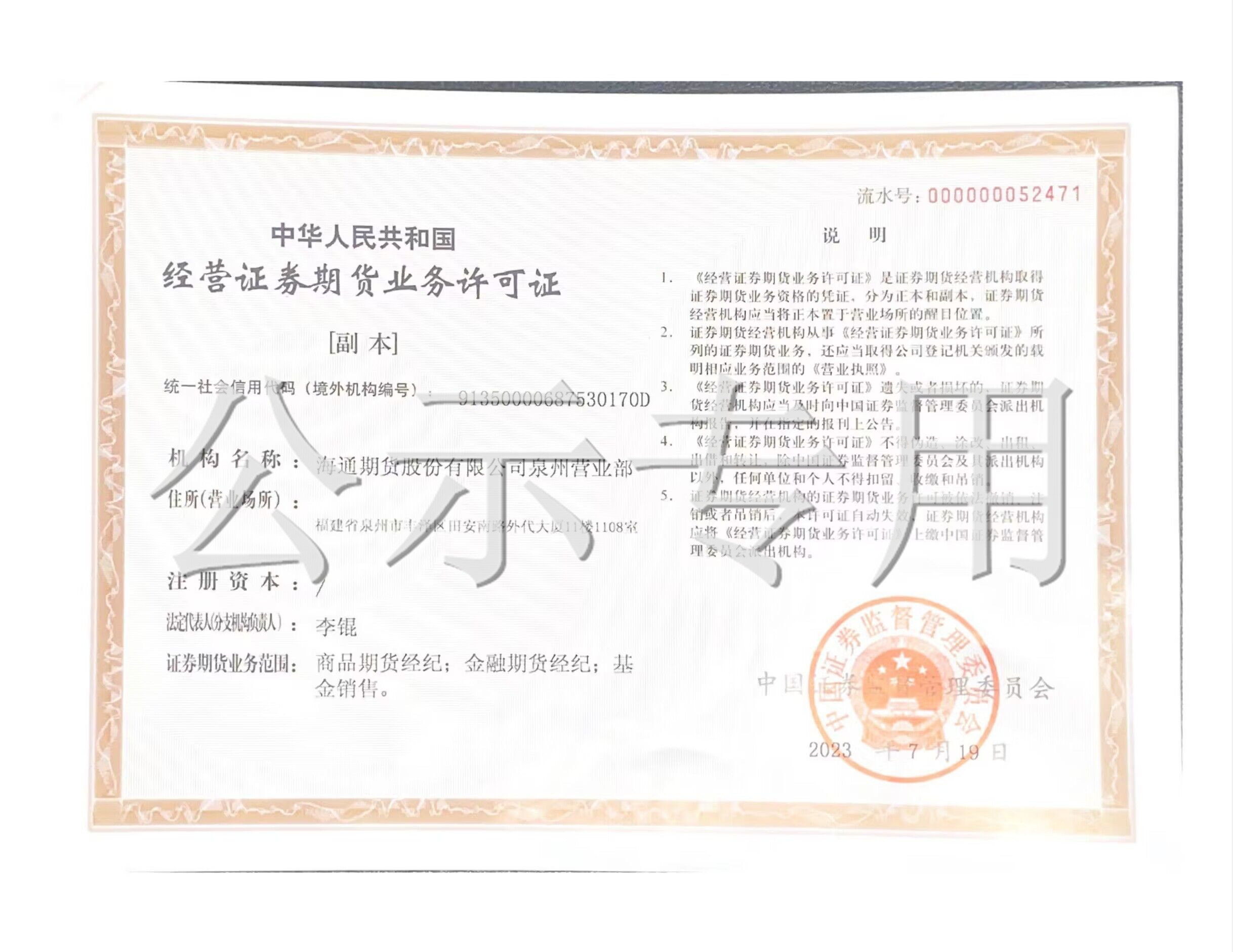 海通期货有限公司泉州营业部位于泉州市丰泽区田安南路外代大厦11楼1108室,建筑面积250平方米。靠近泉州金融圈和商业繁华地区,地理位置重要,交通便捷。营业部场地划分为办公室、开户室、会议室等功能区,设施齐全。营业部采用电信、网通双备份,保证行情的通畅。 营业部在经营管理过程中,严格要求从业人员合法合规开展业务,充分揭示期货市场投资风险和客户须知以及期货交易流程,引导客户控制风险、理性投资。营业部始终以客户需求为先,进行客户服务,组织员工及客户进行不定期期货专业知识培训,提升专业技...
