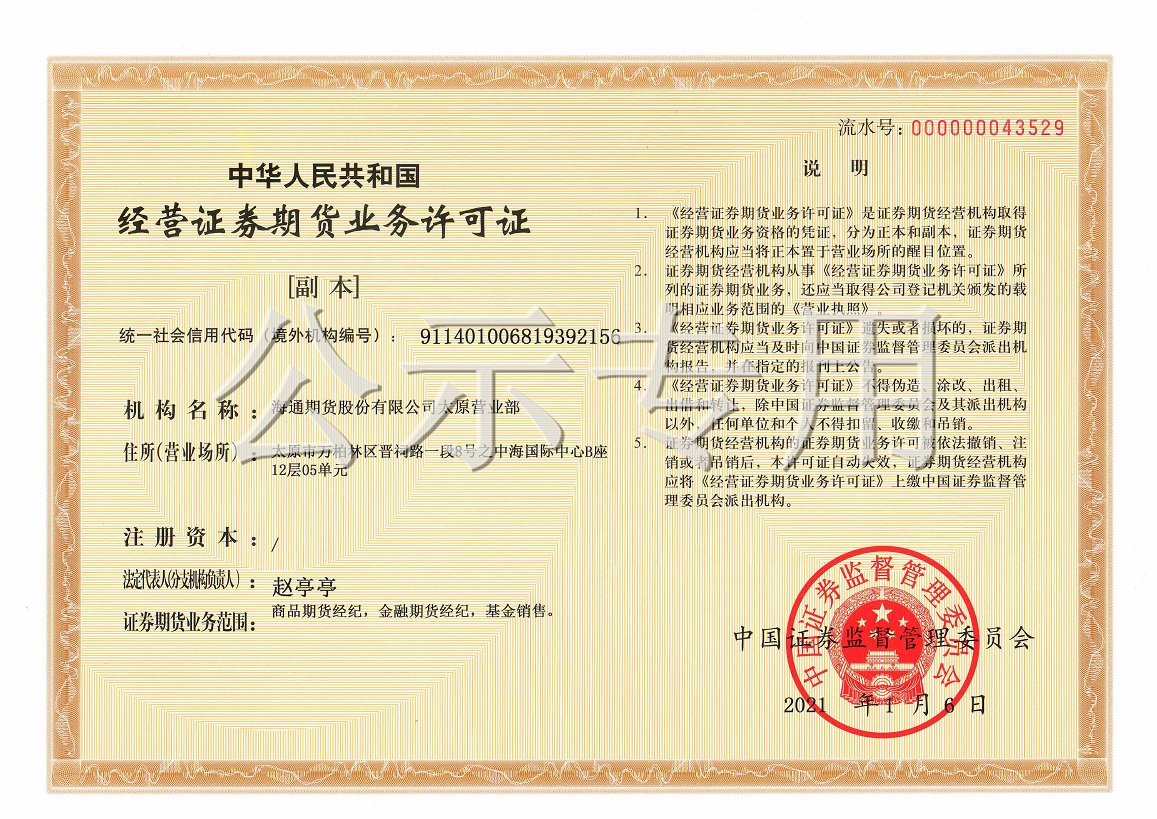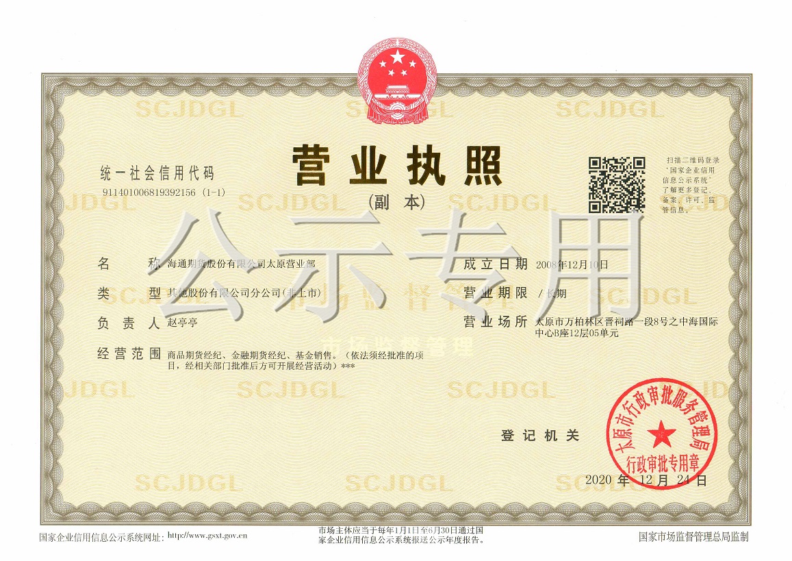 海通期货太原营业部成立于2008年12月18日,是由中国证监会正式审批,获得《期货经纪业务许可证》的合法期货营业部。营业部位于龙城太原,地处迎泽大街与晋祠路交汇处,营业场所设在太原市万柏林区晋祠路一段八号之中海国际中心B座12层05单元,坐落于美丽的汾河西岸,一线河景尽收眼底。营业部对外营业面积250平米,设有开户室、综合办公区、档案室、财务室、会议室等场地,布局合理、宽敞明亮、配置完善、为客户提供了舒适、安静的投资环境。营业部致力于为顾客营造轻松愉悦的氛围,倡导融洽沟通,从细微处关心客户,为投资者提供专业、优质、...