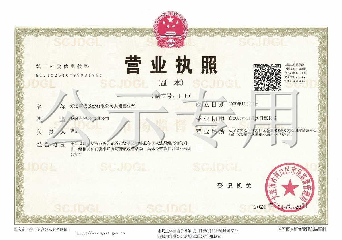 海通期货有限公司大连营业部成立于2008年11月,期货大厦位于星海湾金融商务区域核心地标建筑,俯瞰110万平方米星海广场全景与磅礴大海,楼内集聚业内知名期货公司与所有保证金存管银行,拥有优质的行业资源和人才配置。 海通期货大连营业部秉承“提供全面优质的专业化服务,力求达到客户资产保值增值”的经营理念,引进了多名行业内的专家和精英组建了一支专业化服务团队。本营业部在完善开户交易等基础性服务的同时,还着力打造了以下特色化的服务产品: 1、 套期保值服务:大连营业部可依托总部投资咨询部为各...