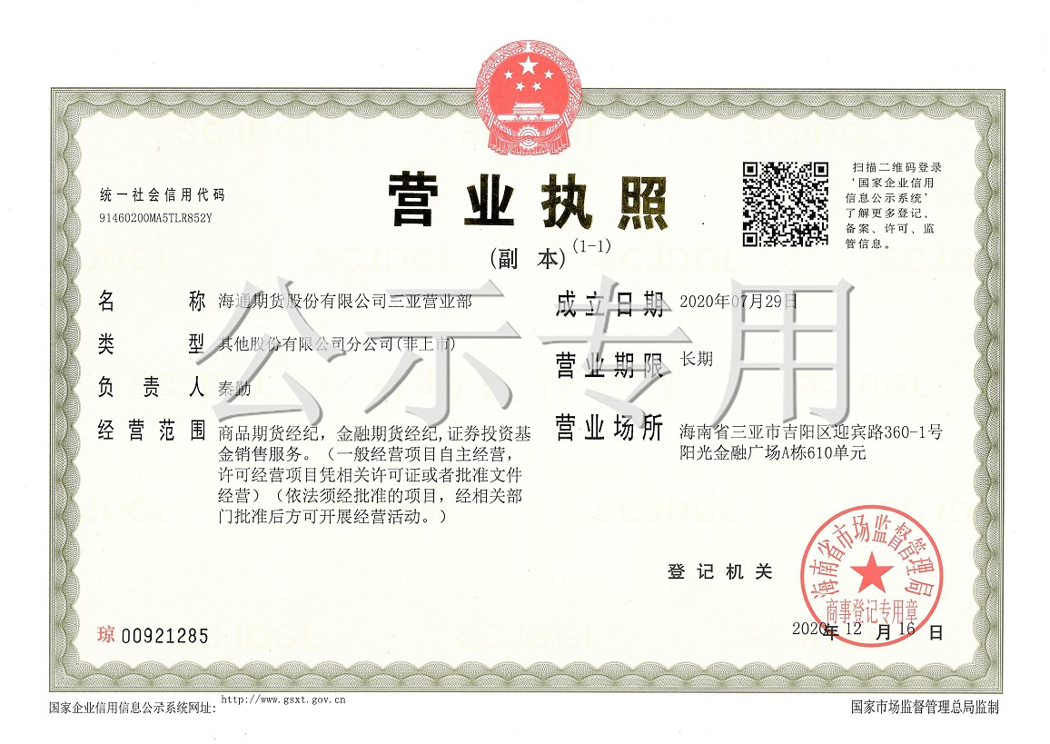 海通期货股份有限公司三亚营业部位于三亚市吉阳区迎宾路360-1号阳光金融广场A栋610单元,营业部办公场所属于三亚市中央商务区、地理位置优越、交通便利。营业面积251平方米,办公环境优雅。 三亚营业部依托海通雄厚的实力为客户提供行业领先的交易通道和安全稳定的技术保障,并为客户提供多样化的研发支持。除此之外,为客户提供专业的财富管理和风险管理服务。财富管理业务 三亚营业部致力于打造海通期货最南端的财富管理中心。 ...